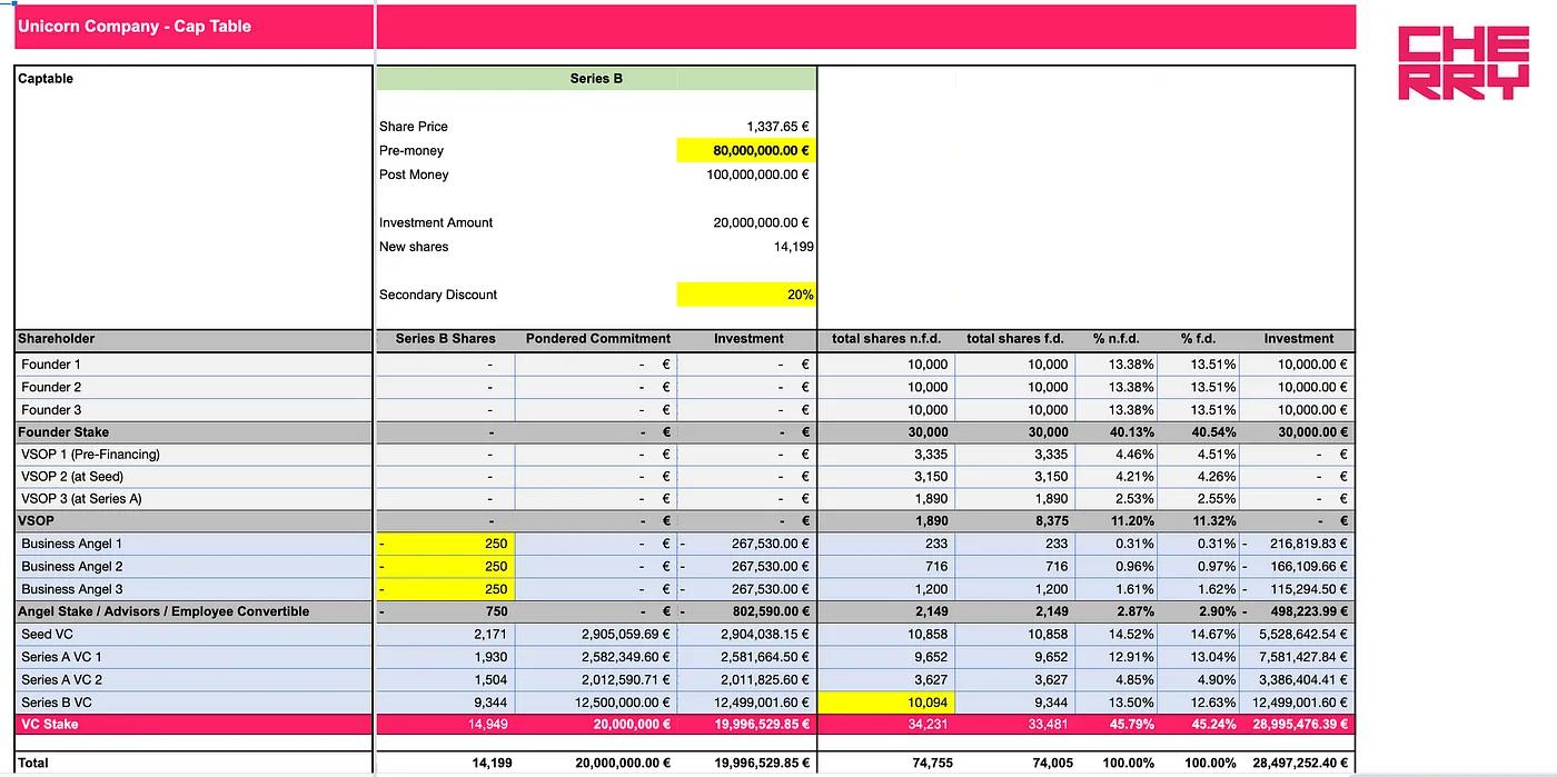 We are focusing on the economic terms here and cap tables are a tool to reflect these. There are, of course, many more factors to consider when raising a financing round and signing a term sheet. But the importance of managing your cap table well cannot be understated. Mistakes happen way too often. We, at Cherry, support our teams in ensuring that the economic outcomes are as expected. Our team, including our general counsel and dedicated finance team, are there for founders every step of the way.